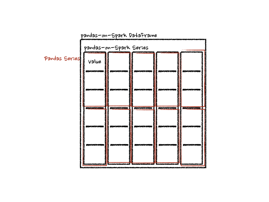 In DataFrame.pandas_on_spark.transform_batch(), DataFrame.pandas_on_spark.apply_batch(), Series.pandas_on_spark.transform_batch(), etc., the batch postfix means each chunk in pandas-on-Spark DataFrame or Series. The APIs slice the pandas-on-Spark DataFrame or Series, and then applies the given function with pandas DataFrame or Series as input and output. See the examples below: